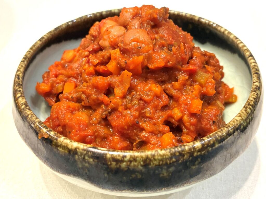 わてくしボロネーゼ及びチリコンカンに絶対的な自信🔥を持っておりまして、とってもおいしゅうございます。世は百戦錬磨の主婦の方々いらっしゃいますが、これだけは勝負の場に出せるのではと自負しておりんす。そのまま食べてワインも良し。チップやクラッカーに付けても良し。バゲットに乗せてチーズを乗せて焼いても良し。もうね半端なく美味しいのでこれ以上いう事はありません。