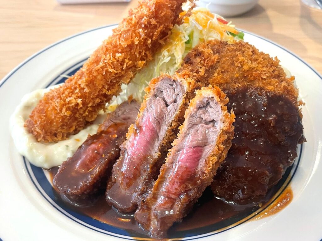 ヘレビーフカツ・メンチカツ・エビフライが入った洋食屋の夢のような定食❤️