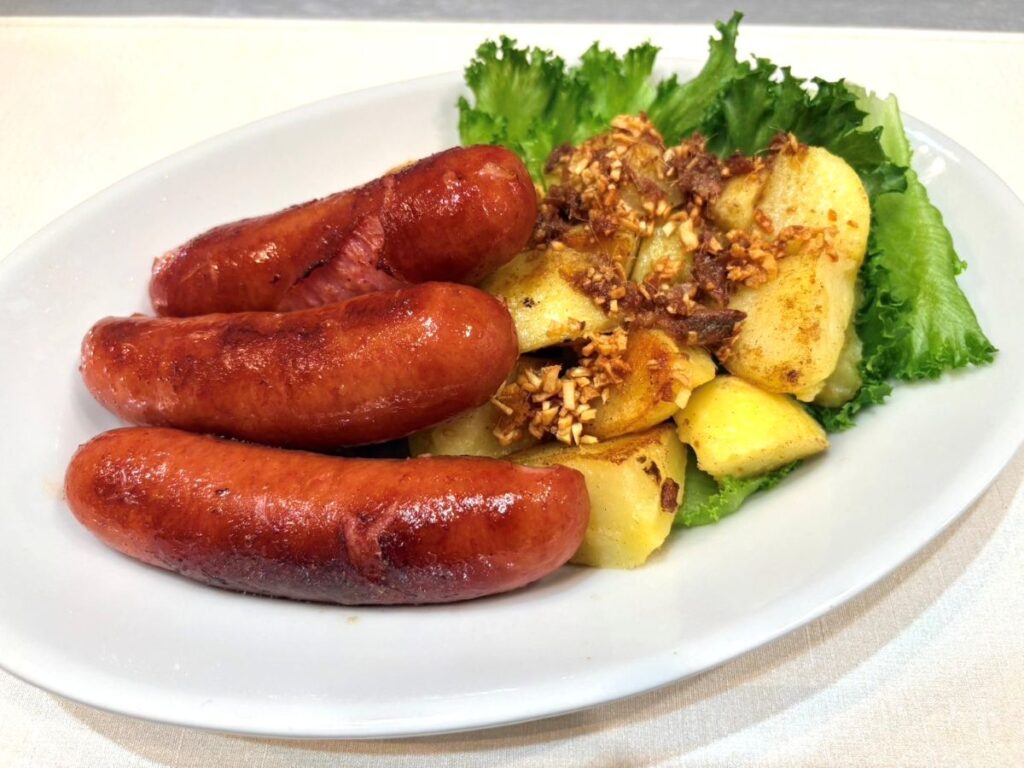 天然の豚腸が使用されていて、食べると皮がパリッとしていて美味しい!