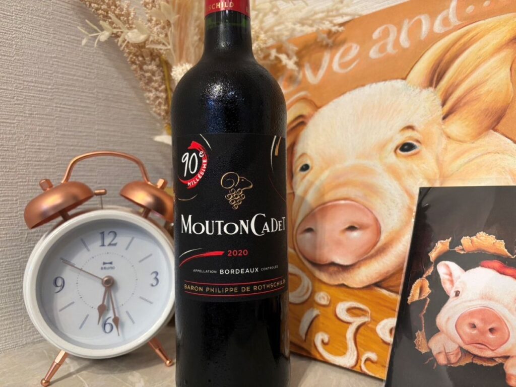 メドック格付け第一級、5大シャトーの一翼であるシャトー・ムートン・ロスチャイルドを擁するバロン・フィリップ・ド・ロスチャイルドが作るカジュアルラインであるムートン・カデ。これは90回目の収穫を記念したアニバーサリーラベルだそうだ!通常ラベルより赤みマシマシで正直めちゃカッコいい。ラベルのカッコよさで目を惹かれてみたら、ムートン・カデやったから、あらちょうど良いとなったのよぉ~🖐️昔ムートン・カデの白ワインはのんだことあったのよ。期待ドMax🔥