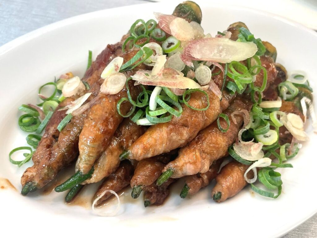 薬味を盛り盛りしてマヨつけながら食べる照焼き風味の肉巻きオクラ。これは和食。日本のワインに合わせて飲む贅沢なひと時💯