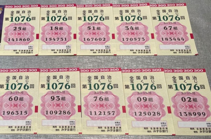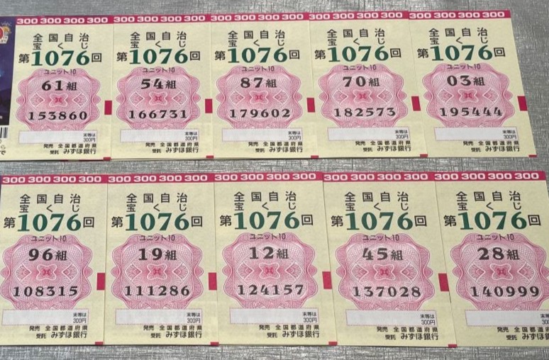 てかてかそもそも別の県で全く違う日に買ったのに、宝くじバラ10枚の下3桁が全部同じやんけ!!!!!