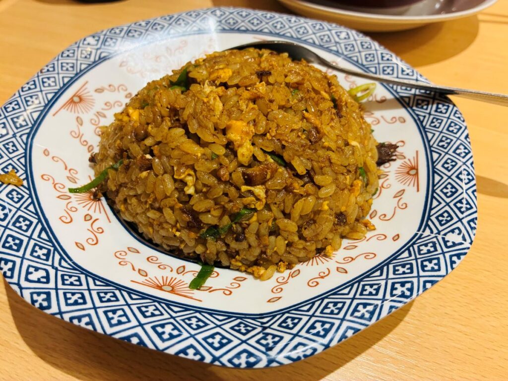 焼き飯も中華そばのスープを使っているであろうしっかりした味付けで大好きなのよー!中華そばのスープを飲んで、この焼き飯を食べる。至福。仕事があるからビール飲めないのだけつらい🥹