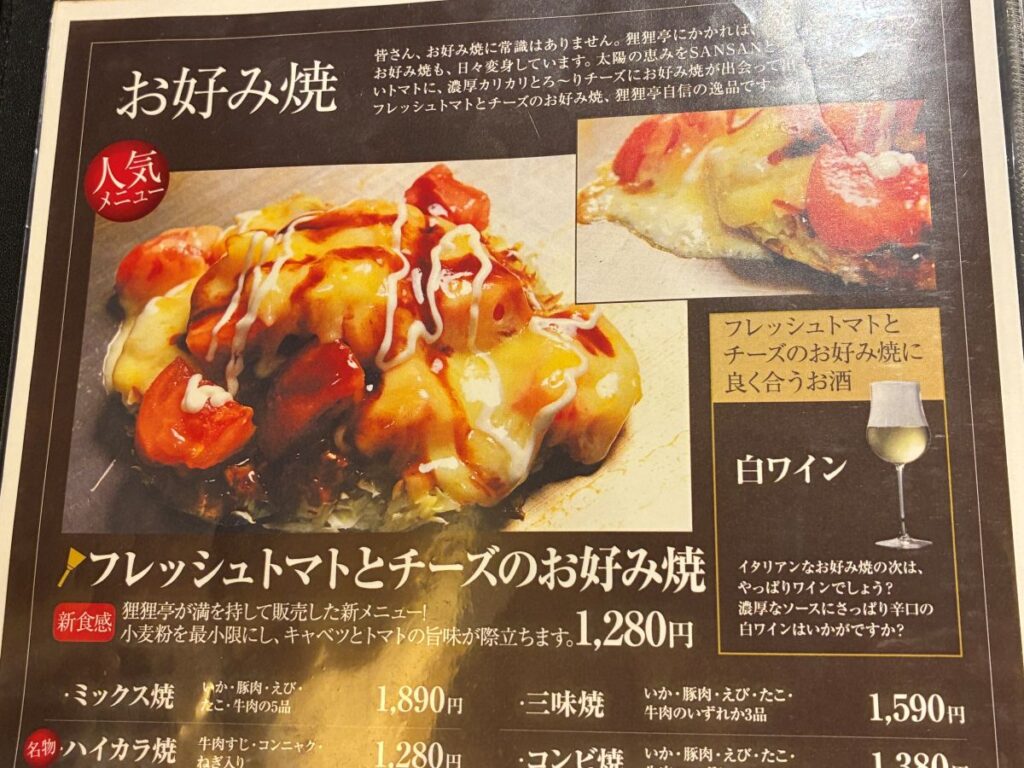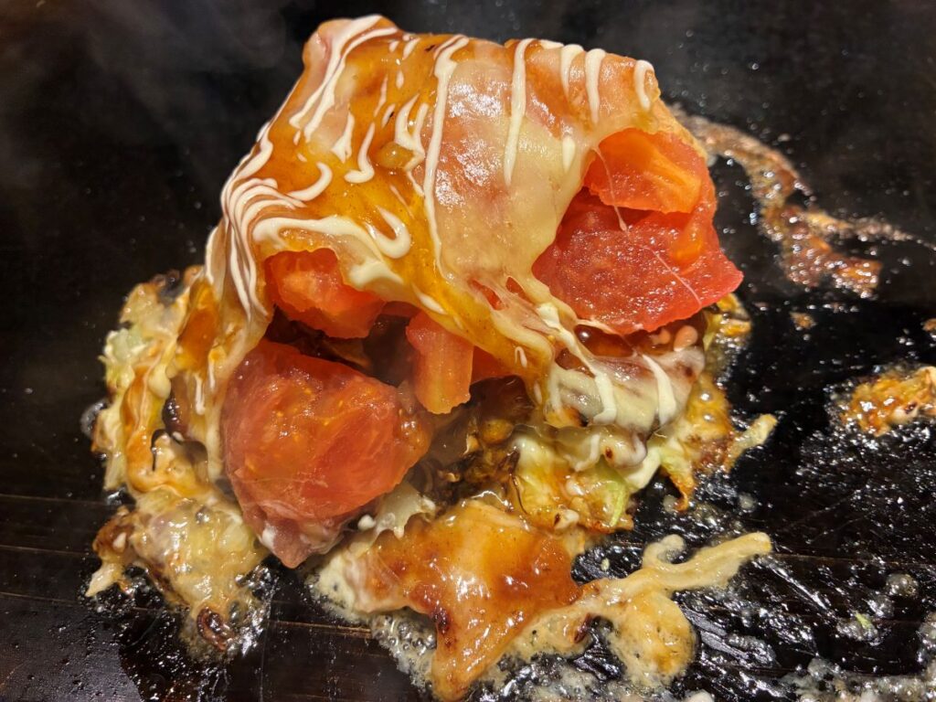 【ぽんぽこ亭 フレッシュトマトとチーズのお好み焼き】