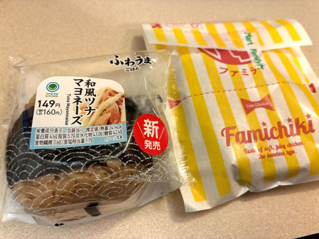 悔しくて夜ご飯はファミチキとおにぎり。