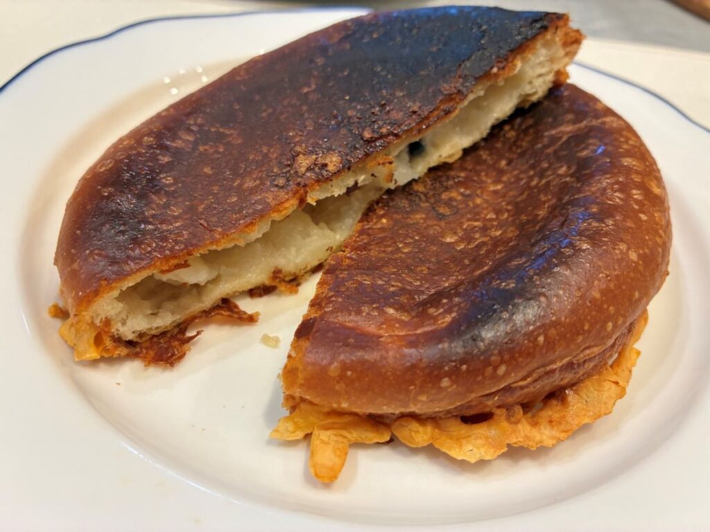 反対から見るとこんな感じ!ふわっふわのお好み焼きの上に焼いて甘くなったトマトとチーズを重ねられてる。初めて食べる感じやけど、ソースとマヨもかかっててちゃんとお好み焼きになってて美味しい!チーズのカリカリのとこめっちゃ好き❤️普通にただのお好み焼きのところもめっちゃ美味しかったから本当に何食べても美味しいんやろうなって思た!お客さんも地元の人しかいてなかったし、愛されるお店なんやろな。仕事のトラブルの電話がずっと来て落ち着いて食べられなかったからまたお酒込みで行きたいな。